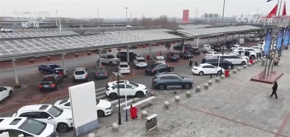 總臺央視記者 陳晰:我現(xiàn)在是在北京向南約150公里的京港澳高速保定服務區(qū)的進入服務區(qū)入口,大家看,這些車輛從北京出發(fā),大約2個小時左右到達這里,他們會在服務區(qū)加油充電、吃飯休息。