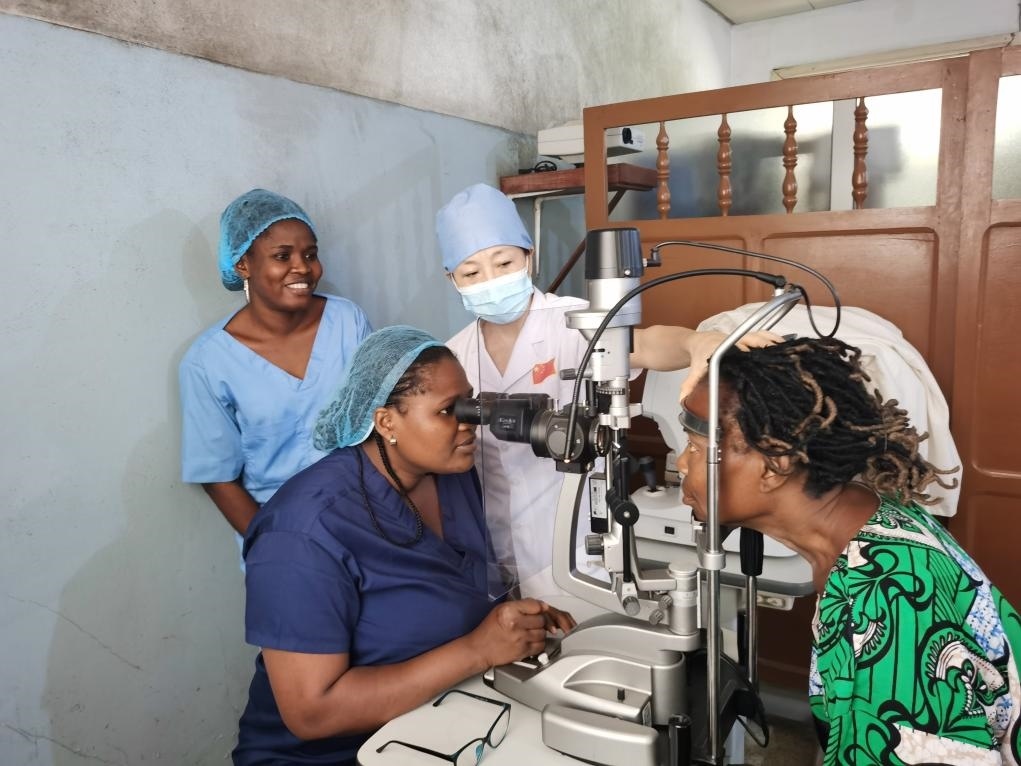 2023年9月,習近平主席同來訪的貝寧總統(tǒng)塔隆宣布中貝建立戰(zhàn)略伙伴關系,兩國元首共同見證簽署包括衛(wèi)生健康在內的多項雙邊合作文件。作為落實兩國元首共識、惠及當?shù)孛裆囊豁椫匾e措,來自中國的眼科專家同中國第26批援貝寧醫(yī)療隊一起在貝寧開展“光明行”活動,為當?shù)?00多名白內障患者提供診療,并在當?shù)赝苿咏ⅰ爸胸愌劭浦行摹薄?/p>