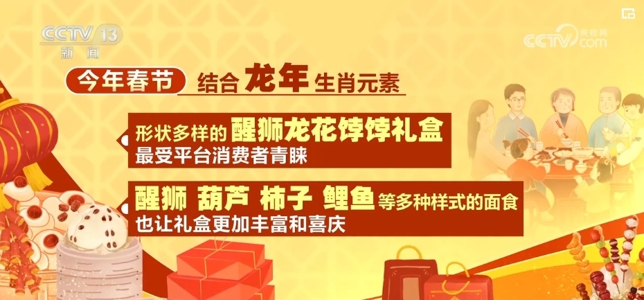 不僅如此,2024年春節(jié),結(jié)合龍年生肖元素,形狀多樣的醒獅龍花餑餑禮盒最受平臺(tái)消費(fèi)者青睞。而醒獅、葫蘆、柿子、鯉魚等多種樣式的面食,也讓禮盒更加豐富和喜慶。