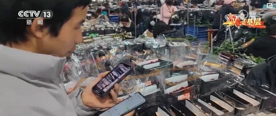 跟往年相比,一邊手機(jī)直播,一邊驗花帶貨,也成為一種流行的銷售新模式。