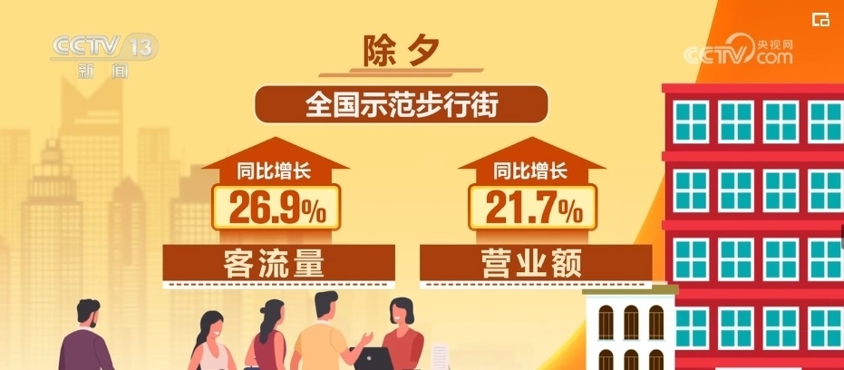 據(jù)商務(wù)部大數(shù)據(jù)監(jiān)測(cè),2024年除夕,部分重點(diǎn)大型超市即時(shí)零售銷售額同比增長(zhǎng)約20%。除夕當(dāng)天,重點(diǎn)電商平臺(tái)在線餐飲銷售額同比增長(zhǎng)40.8%,全國(guó)示范步行街客流量、營(yíng)業(yè)額同比分別增長(zhǎng)26.9%和21.7%。