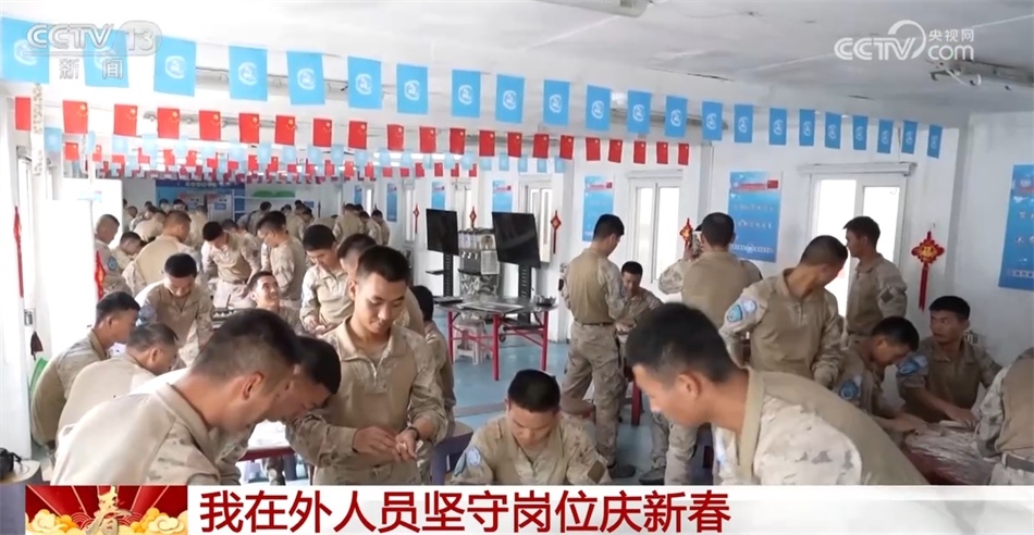 新春佳節(jié)之際,中國(guó)第27批赴剛果(金)維和工兵分隊(duì)30余名官兵堅(jiān)守在兩個(gè)分遣點(diǎn),執(zhí)行道路修復(fù)和伴隨保障任務(wù),醫(yī)療分隊(duì)派出巡診服務(wù)隊(duì)行程超過200公里。在完成緊張繁重的執(zhí)勤任務(wù)之余,官兵們掛燈籠、貼春聯(lián)、包餃子,在濃濃年味中一表思鄉(xiāng)之情。