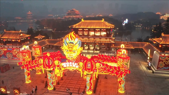 春節(jié)期間,西安大唐芙蓉園新春燈會流光溢彩,“祥龍迎春”“龍鳳呈祥”“百鳥朝鳳”……一盞盞花燈形態(tài)各異。