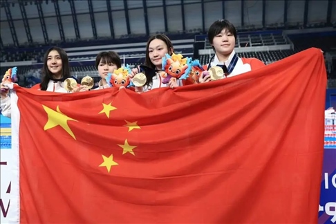北京時間2月16日凌晨,在2024世界游泳錦標(biāo)賽女子4×200米自由泳接力決賽中,由艾衍含、龔真琦、李冰潔和楊佩琪組成的中國隊(duì)以7分47秒26的成績奪冠。