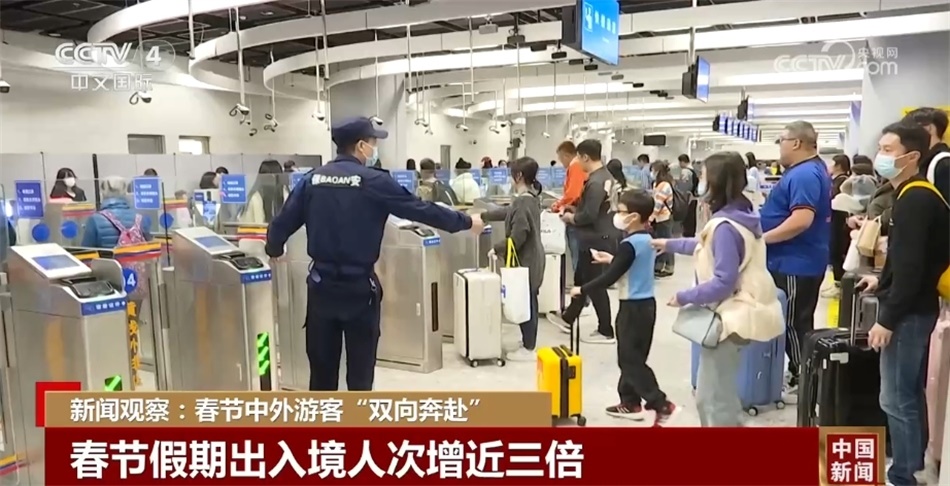 春節(jié)前,中國(guó)對(duì)多個(gè)國(guó)家單方面免簽證,今年春節(jié)出境游、入境游訂單均超過(guò)2019年同期。其中,出境游創(chuàng)下近4年峰值,預(yù)訂量同比增長(zhǎng)近10倍。全國(guó)邊檢機(jī)關(guān)共驗(yàn)放中外出入境人員1351.7萬(wàn)人次,較2023年春節(jié)同期增長(zhǎng)2.8倍,恢復(fù)至2019年春節(jié)同期的近九成。