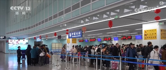 在吳淞口國際郵輪港T2航站樓邊檢查驗(yàn)大廳看到,一批批旅客在工作人員引導(dǎo)下有序排隊(duì)候檢。
