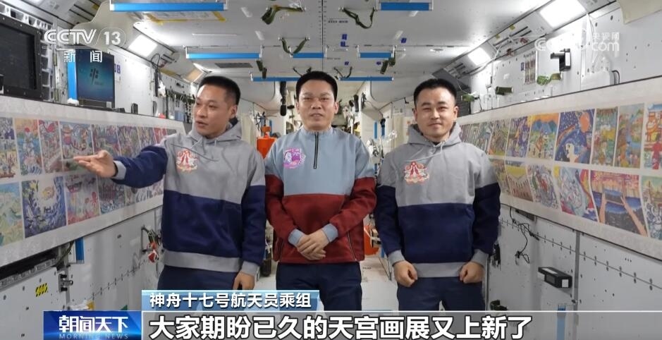 神舟十七號(hào)航天員乘組在鏡頭面前介紹“天宮畫展”時(shí)說:“全國(guó)各地的青少年朋友們,大家新年好!我們是神舟十七號(hào)航天員乘組,這里是咱們中國(guó)人自己的太空家園——中國(guó)空間站。分享一個(gè)好消息,大家期盼已久的天宮畫展又‘上新’了!”