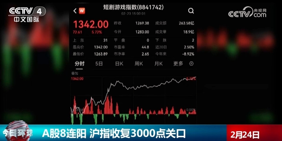 A股8連陽 滬指收復(fù)3000點關(guān)口