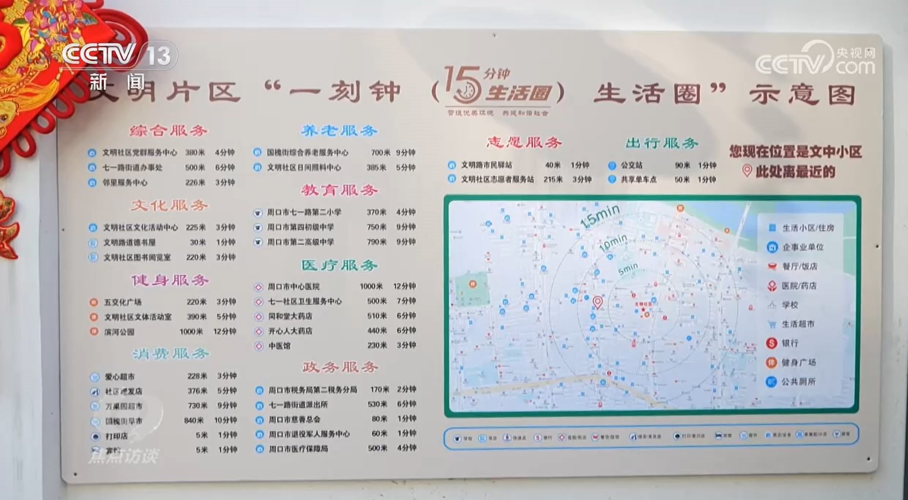 央視網(wǎng)消息(焦點訪談):走出家門,在步行一刻鐘的范圍內(nèi)可以做些什么?河南周口市川匯區(qū)文明片區(qū)的15分鐘生活圈地圖上可以看到百姓基本生活所需幾乎全部覆蓋。河南省周口市是農(nóng)業(yè)大市、人口大市,長期以來,這里城市化水平比較低,城市基礎設施和公共服務設施建設歷史欠賬多。川匯區(qū)作為城市的老舊小區(qū),遺留問題尤其多。2023年,川匯區(qū)在改造老舊小區(qū)的同時,著力打造15分鐘便民生活圈。經(jīng)過一系列的措施,現(xiàn)在居民的生活怎樣了呢?
