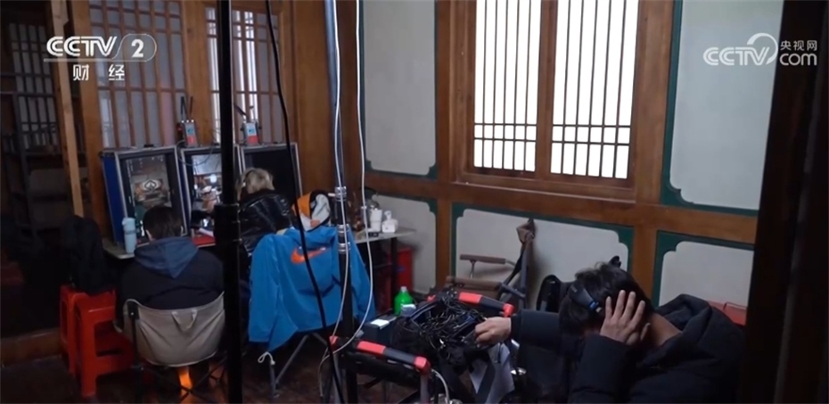 在橫店影視城這棟大樓里,一個(gè)微短劇劇組正在加緊拍攝,燈光、攝影、滑軌,專業(yè)設(shè)備通通就位,講戲、對(duì)詞、走位,演員全情投入。
