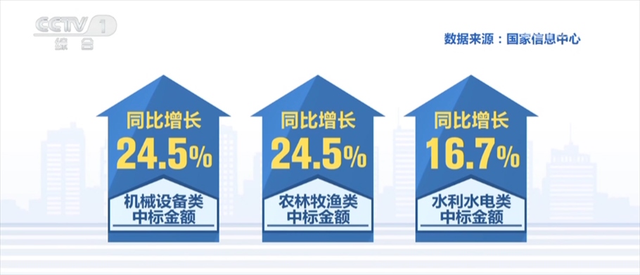 在投資方面,今年1、2月份,與工程項(xiàng)目投資立項(xiàng)、建設(shè)相關(guān)的指標(biāo)較去年同期增長明顯。國家信息中心監(jiān)測數(shù)據(jù)顯示,今年1—2月全國項(xiàng)目投資中標(biāo)金額同比增長9.1%。其中,機(jī)械設(shè)備類、農(nóng)林牧漁類、水利水電類等中標(biāo)金額分別同比增漲24.5%、24.5%、16.7%??梢钥闯?,在多項(xiàng)支持政策的共同推動(dòng)下,我國制造業(yè)重點(diǎn)行業(yè)投資持續(xù)向好,民生補(bǔ)短板投資力度不斷加大。?