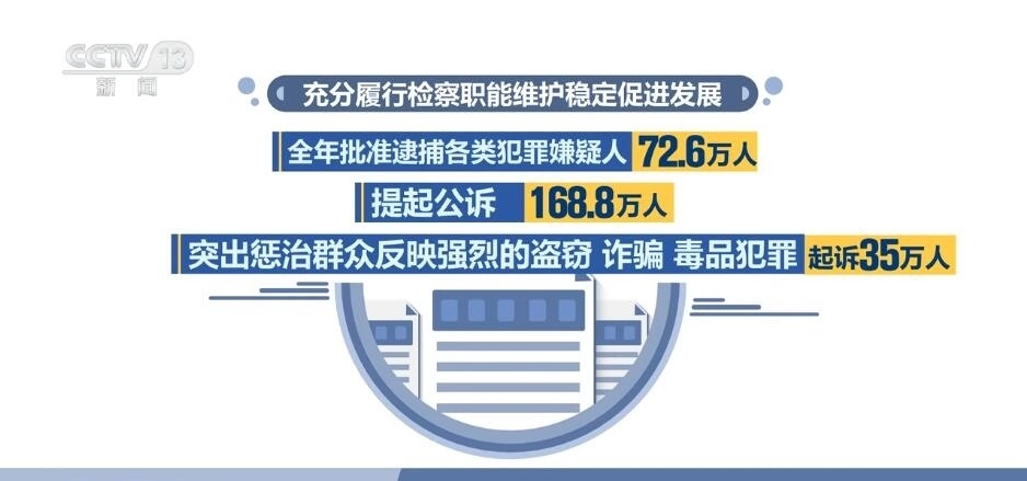 充分履行檢察職能維護穩(wěn)定促進發(fā)展。全年批準逮捕各類犯罪嫌疑人72.6萬人,提起公訴168.8萬人。突出懲治群眾反映強烈的盜竊、詐騙、毒品犯罪,起訴35萬人。