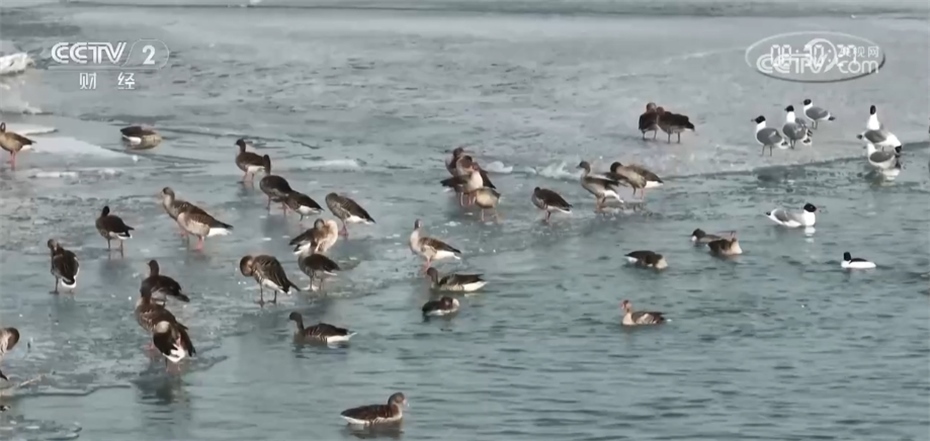 三月份以來(lái),寧夏青銅峽庫(kù)區(qū)濕地自然保護(hù)區(qū)陸續(xù)迎來(lái)了北遷的候鳥(niǎo),畫(huà)面中,三只大天鵝在水中暢游,隨后輕輕踏上冰面。這時(shí)一群豆雁也慢慢游向大天鵝,大天鵝與豆雁“共舞”,構(gòu)成了一幅充滿活力的生態(tài)畫(huà)卷。預(yù)計(jì)到三月中旬,青銅峽庫(kù)區(qū)濕地保護(hù)區(qū)將迎來(lái)候鳥(niǎo)遷徙的高峰期。