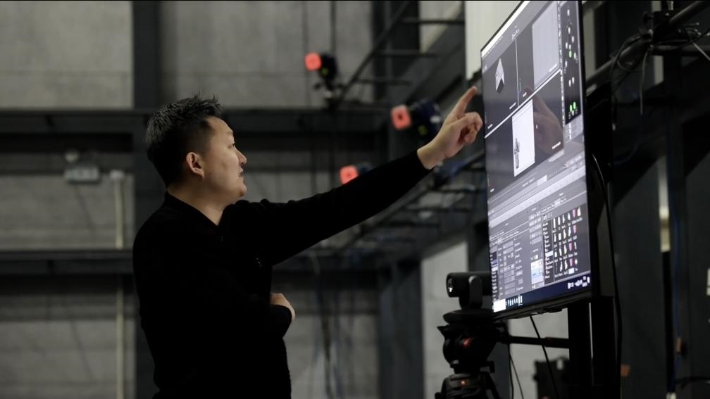 “這是動作數(shù)字孿生,利用光學(xué)動捕技術(shù),棚內(nèi)多個專業(yè)攝像頭捕捉演員身上的特定標(biāo)記,以毫秒級的速率計算出角色的運(yùn)動軌跡,然后將數(shù)據(jù)傳送到電腦上,實現(xiàn)虛擬人物的動作?!眹覄勇@公共技術(shù)服務(wù)平臺動捕棚的技術(shù)顧問崔盛輯向記者介紹道。