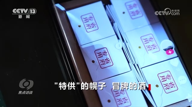 國家市場監(jiān)督管理總局食品經(jīng)營司餐飲監(jiān)管一處處長馬朝輝:“2013年,原食品藥品監(jiān)管總局印發(fā)了加強(qiáng)白酒質(zhì)量安全監(jiān)管工作的通知,在這個(gè)通知中明確規(guī)定不準(zhǔn)生產(chǎn)標(biāo)注‘特供’‘專供’等字樣的白酒。2013年,國務(wù)院機(jī)關(guān)事務(wù)管理局、中共中央直屬機(jī)關(guān)事務(wù)管理局、財(cái)政部、審計(jì)署、原工商總局,五個(gè)部門也聯(lián)合下發(fā)了通知,嚴(yán)禁中央和國家機(jī)關(guān)各部門及其所屬行政事業(yè)單位,使用包括自行或授權(quán)制售冠以‘特供’‘專供’等標(biāo)識(shí)的物品?!?/p>