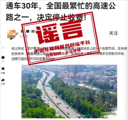 ·有網(wǎng)民稱“京滬高速公路停止收費”,有關部門辟謠。