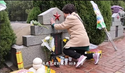 ·81歲的女兒董齊英跨越81年找到烈士父親陳德新,墓碑前泣不成聲。1944年,董齊英在隨父行軍中出生。同年11月,其父陳德新在反“掃蕩”中犧牲。母親為了她的安全,將她送給同村老鄉(xiāng)養(yǎng)育,更名為董齊英。?
