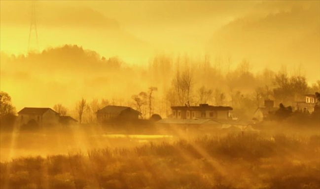3月29日,安徽省池州市梅村鎮(zhèn)晨霧彌漫,靜謐的村莊、油菜花田在朝霞中若隱若現(xiàn),宛如一幅夢(mèng)幻的江南詩(shī)意畫(huà)卷。