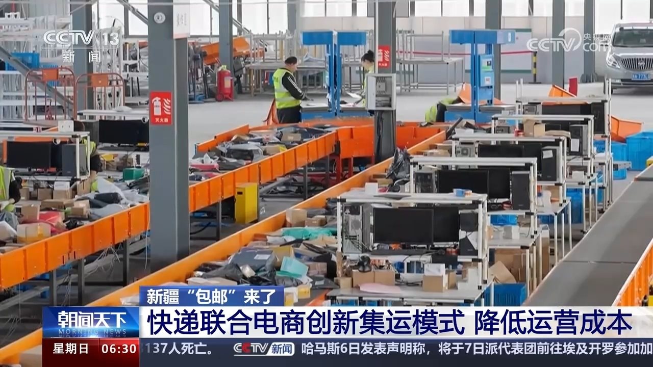 記者來到浙江杭州郵政的一處倉庫,發(fā)現(xiàn)不少郵件上面都貼有“特惠集運(yùn)”的標(biāo)識(shí)。工作人員介紹,這是全國首個(gè)國內(nèi)郵政集拼倉,全國各大電商平臺(tái)和快遞公司的郵件可以統(tǒng)一發(fā)往杭州后經(jīng)由這里統(tǒng)一裝車直達(dá)新疆,減少了以往到蘭州等地經(jīng)轉(zhuǎn)后再次裝卸、運(yùn)輸?shù)攘鞒獭?/p>