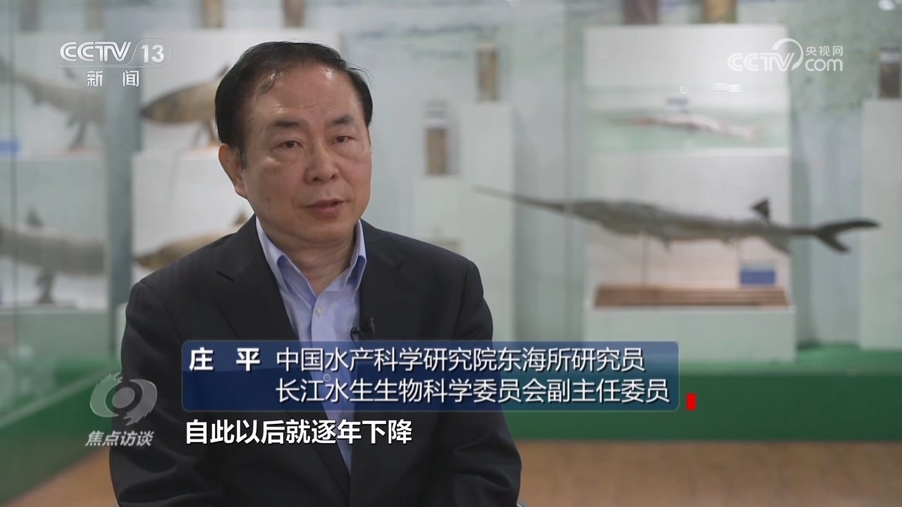 中國水產(chǎn)科學研究院東海所研究員、長江水生生物科學委員會副主任委員莊平:“有記錄以來長江漁業(yè)資源的總量,在1954年漁業(yè)產(chǎn)量是最高峰,達到了45萬噸,自此以后就逐年下降,到長江禁漁之前只有10萬噸還不到。另外,在長江中瀕危物種增加的速度也是非常快的,還有些物種滅絕了,比如2007年宣布‘長江女神’白鱀豚功能性滅絕。2022年,世界自然保護聯(lián)盟也就是IUCN宣布長江白鱘滅絕、長江鱘野外滅絕,還有一些沒有被官方宣布滅絕的種類也是多年未見,比如長江鰣魚?!?/p>