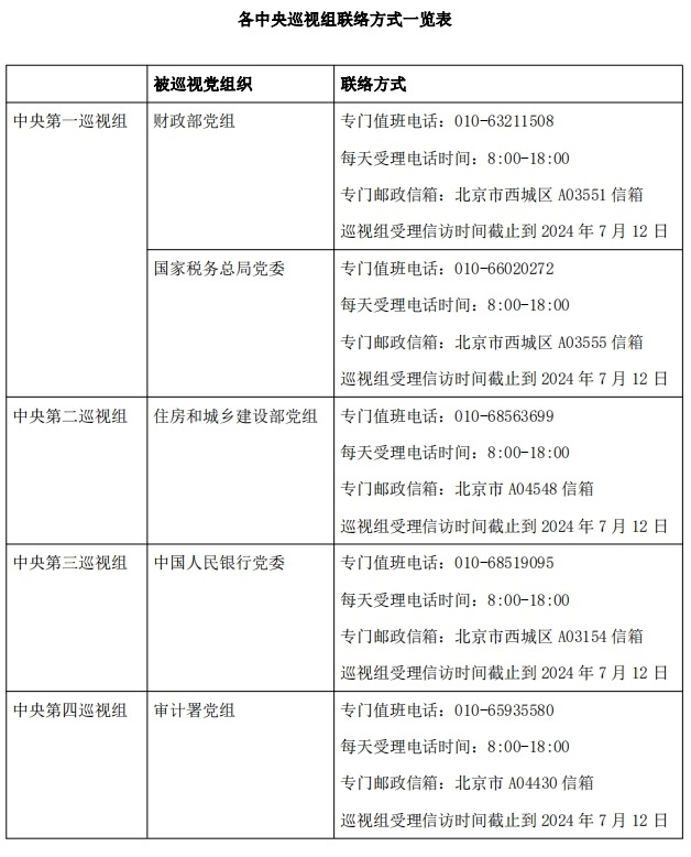 根據(jù)黨中央關(guān)于巡視工作統(tǒng)一部署,二十屆中央第三輪巡視的15個(gè)巡視組陸續(xù)開(kāi)始進(jìn)駐被巡視單位。目前,中央巡視組已進(jìn)駐17家單位并公布了聯(lián)系方式。據(jù)了解,中央巡視組將在被巡視黨組織工作3個(gè)月左右。