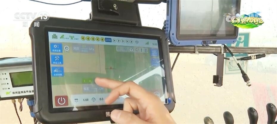 記者看到,播種機上有幾塊顯示屏,其中一塊顯示屏可以通過北斗導(dǎo)航對整個農(nóng)機的駕駛速度進行有效控制,能夠保證播下去的種子株間距更加均勻,而且還能夠準確、不漏種。