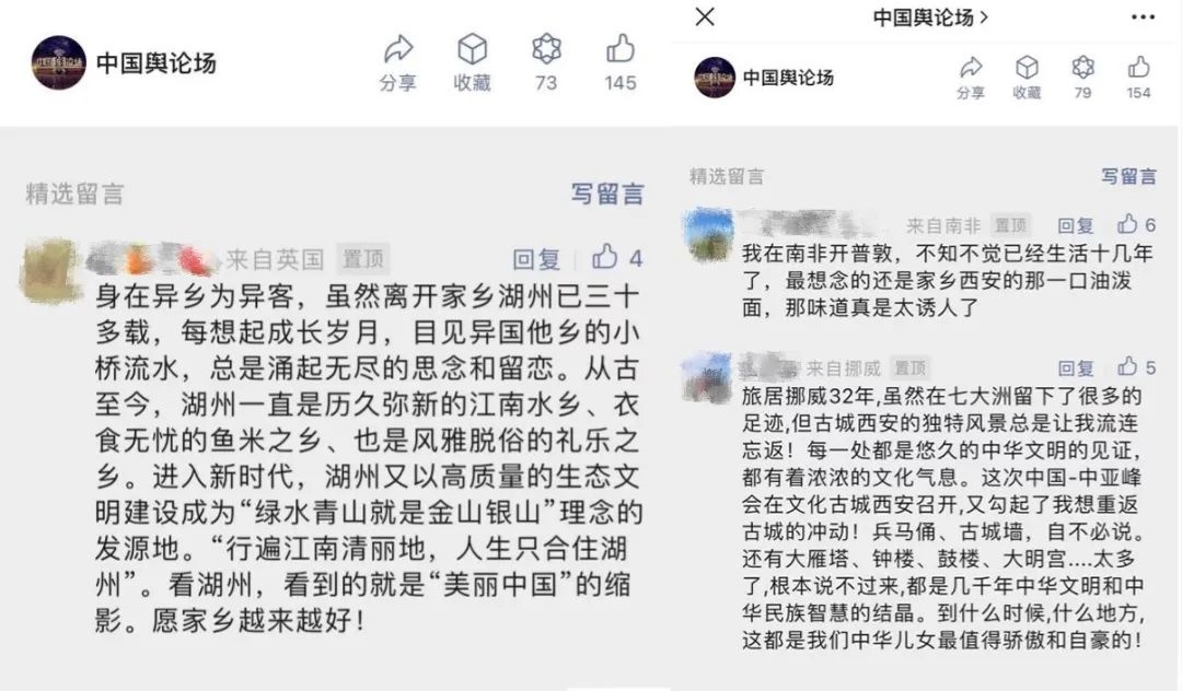 “早安中國(guó)切口新穎,有文化屬性和微記錄的氣質(zhì)?!薄懊看纹驳慕Y(jié)語(yǔ)字幕,都是從哪里選的?每天,都給我學(xué)習(xí)的機(jī)會(huì)?!薄皩I(yè)微記錄是媒體融合最寬廣的路?!薄对绨仓袊?guó)》真真切切地緩解了許多海內(nèi)外網(wǎng)友的故土思鄉(xiāng)情切,也收到了來自四面八方的認(rèn)可及反饋?!吨袊?guó)輿論場(chǎng)》節(jié)目持續(xù)發(fā)出“游子看故鄉(xiāng)”征集令,請(qǐng)海外華僑華人說出對(duì)家鄉(xiāng)的思念和心中最想“打卡”的祖國(guó)美景。