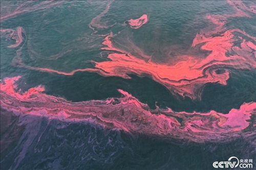 近日,深圳玫瑰海岸海域出現(xiàn)粉色“飛天飄帶”景觀。