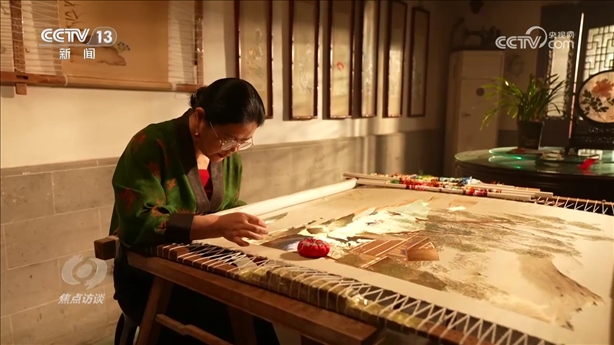 盧建英:“當(dāng)時(shí)我在繡一幅《桃花太平鳥圖》,習(xí)近平總書記走到了我的繃架前。他說你好,很親切,很和藹,看得非常仔細(xì)。他說中華文化的傳承力有多強(qiáng),通過這個(gè)蘇繡可以看出來,像這樣的功夫充分體現(xiàn)出中國(guó)人的韌性、耐心和定力,這是中華民族精神的一部分,能得到總書記的認(rèn)可,真的是倍感榮耀?!?/p>