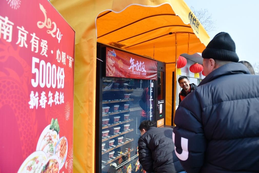 2024年2月9日,南京市交通運(yùn)輸局面向網(wǎng)約車司機(jī)、快遞員等新業(yè)態(tài)勞動(dòng)者開展“年夜飯”贈(zèng)送活動(dòng)。 新華社記者 柳文惠 攝