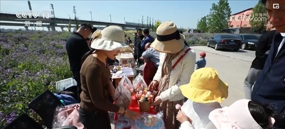 一年前,這里還是一片工地遺留的建筑渣土。當(dāng)?shù)嘏c科研團(tuán)隊(duì)合作,引進(jìn)營養(yǎng)土技術(shù),一年內(nèi)就將撂荒地變成了“桃花源”。花海邊還擺起了創(chuàng)意市集,結(jié)合“花”元素的花餑餑、非遺農(nóng)民畫和黑陶工藝品,吸引了不少游客消費(fèi)。