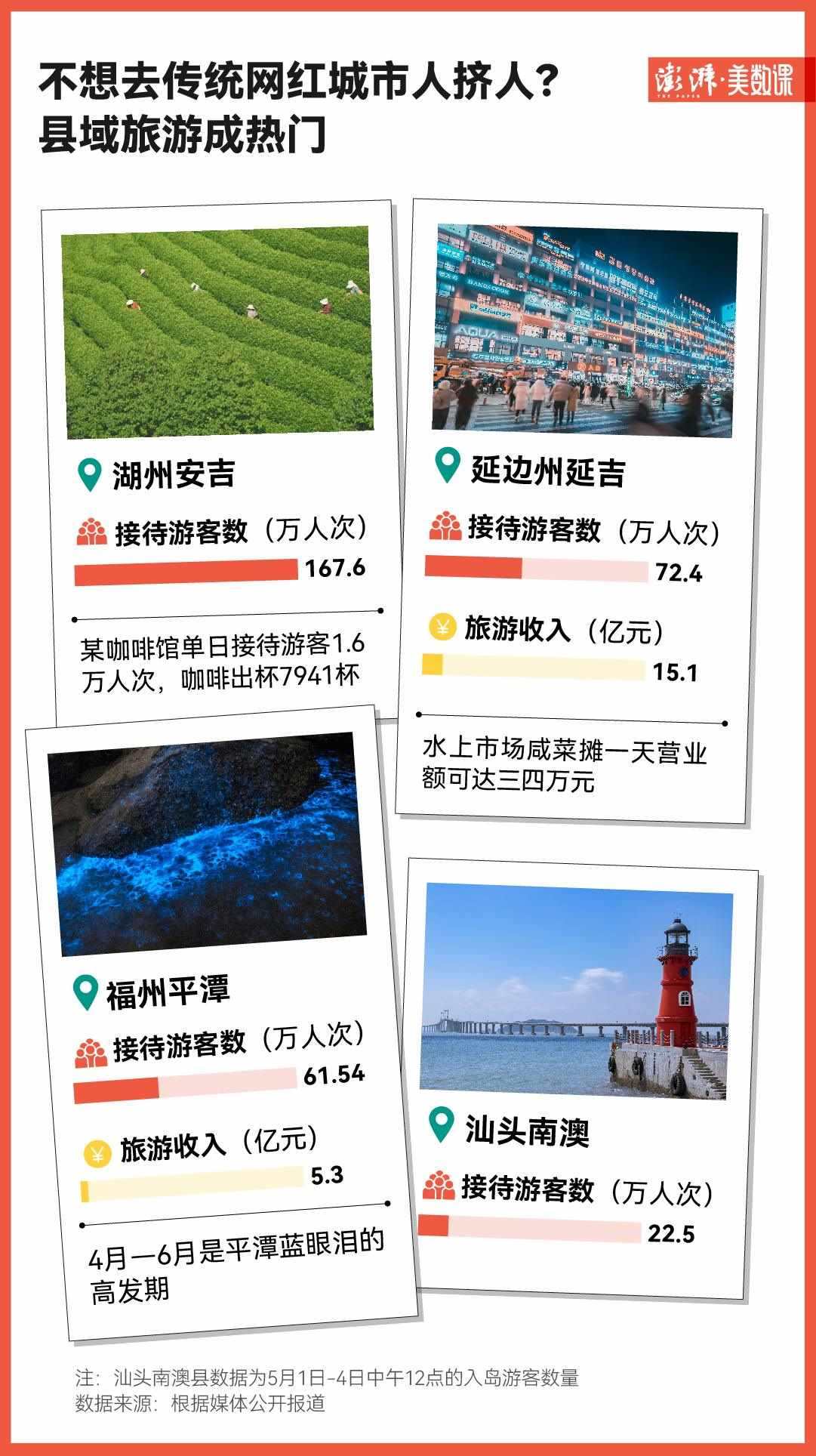 不僅如此,旅游下沉化的趨勢已經來到了縣級市。湖州安吉在這個“五一”假期就收獲了167.6萬人次的游客數(shù)量。據“安吉旅游”公眾號,當?shù)啬晨Х瑞^單日接待游客1.6萬人次,咖啡出杯7941杯。