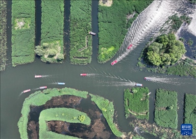 5月8日,游船在雄安新區(qū)白洋淀內(nèi)行駛。