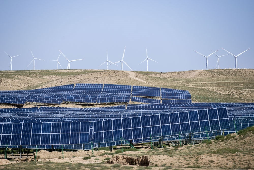 寧夏靈武,國能寧東200萬千瓦復(fù)合光伏基地,370多萬塊光伏板沿著廣袤荒灘起伏,在午后驕陽下泛起“粼粼波光”,不斷向浙江等地輸送綠電。