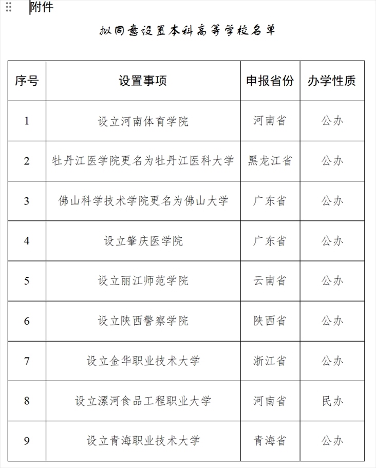 ·教育部:擬同意設(shè)置佛山大學(xué)等9所本科高校。