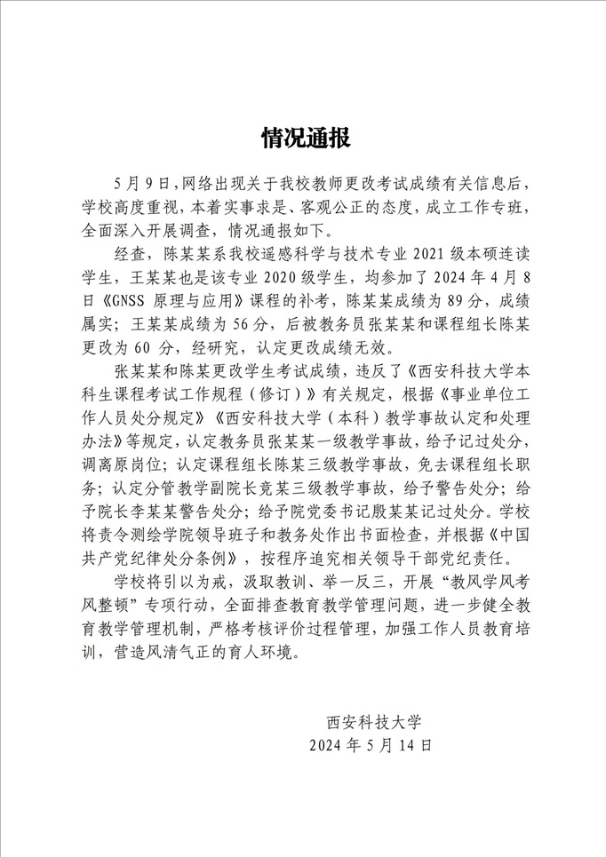 ·學(xué)生成績(jī)按“鬧”修改?西安科大通報(bào):更改成績(jī)無效,多人被處分。