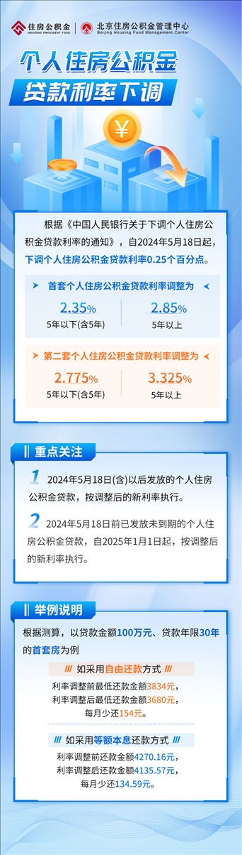5月18日,北京住房公積金管理中心發(fā)布消息,5月18日起下調個人住房公積金貸款利率0.25個百分點。