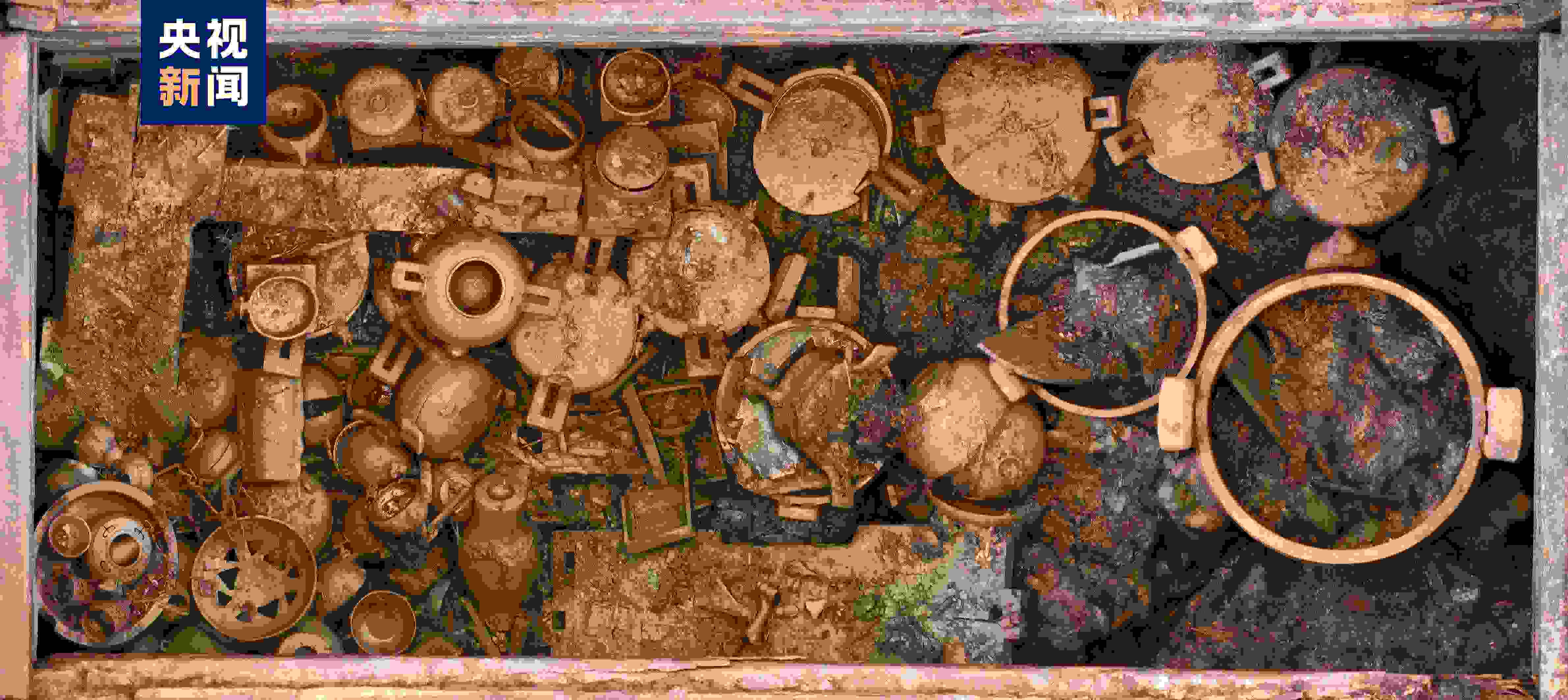 東一室以青銅器為主,目前提取青銅器150多件(組),器類有鼎、簋、簠、敦、鈁、壺、甗、豆、鑒、釜、盤、尊缶等,青銅禮器組合保存完整;與青銅器同出的還有百余件案、俎、盒、榻等漆木質(zhì)飲食宴享起居用具。
