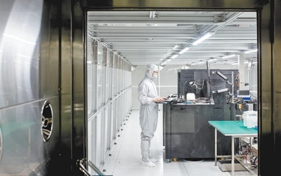 穿上防塵服,再經(jīng)過兩次噴淋除塵,記者才能進(jìn)入創(chuàng)新中心的芯片封裝測試驗(yàn)證平臺。