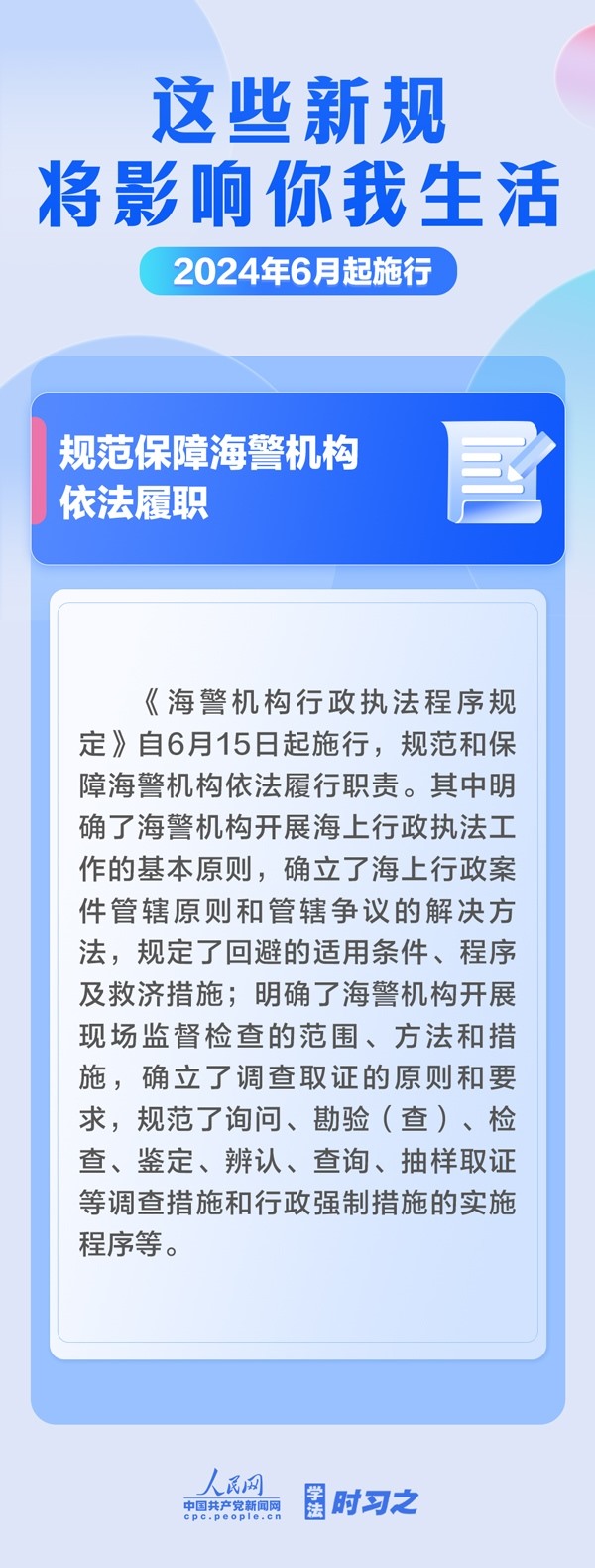 ? ? 保障糧食有效供給;確立生態(tài)保護(hù)補償基本制度規(guī)則;規(guī)范保障海警機構(gòu)依法履職……6月起,這些新規(guī)施行,將影響你我生活。