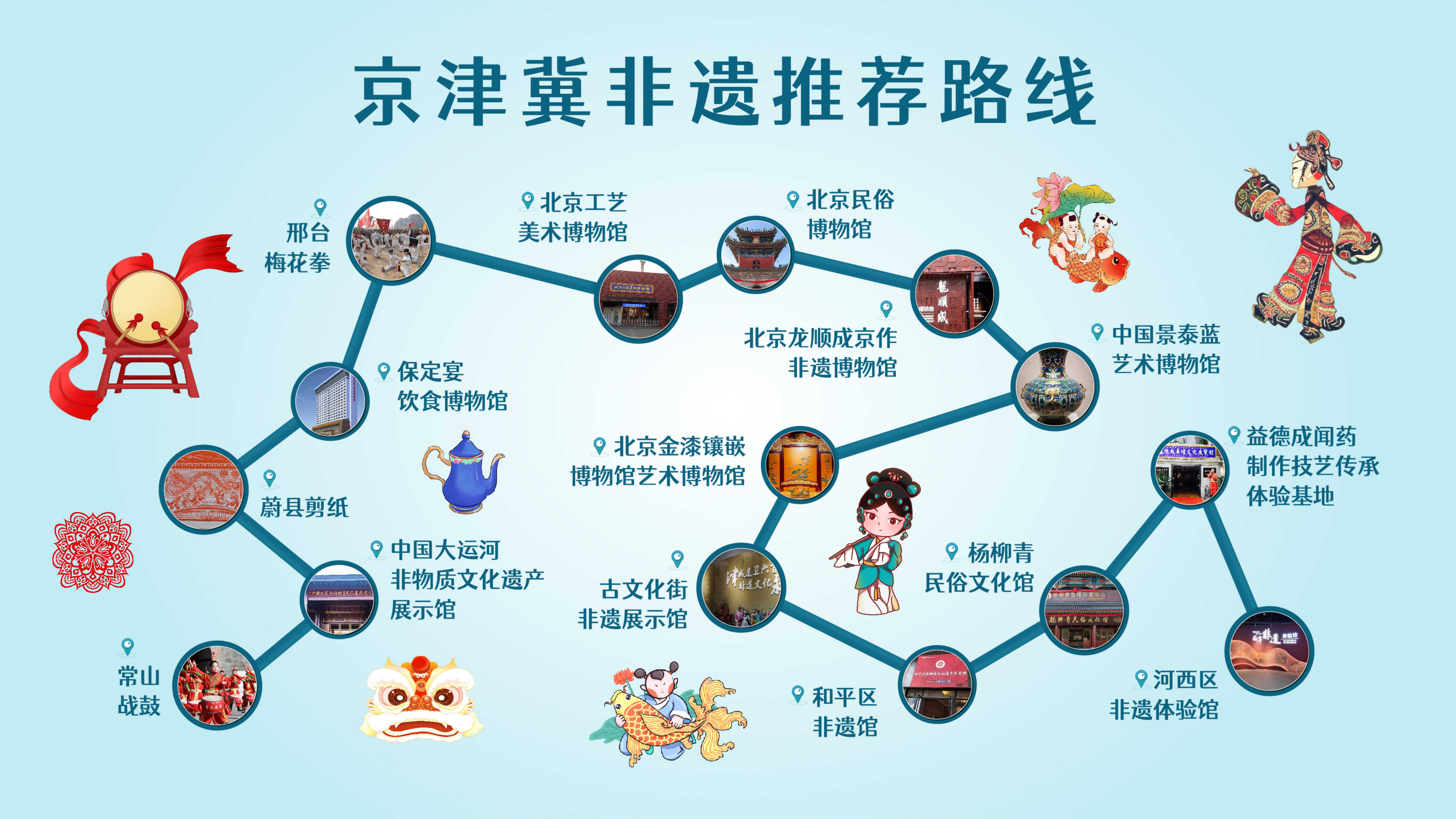 本次發(fā)布的京津冀文旅地圖涵蓋三地美食、非遺、古跡、紅色等四條線路,包含長城、京張體育文化旅游帶、大運(yùn)河國家文化公園建設(shè)、冬奧遺產(chǎn)等多處旅游資源和貫穿全年的文旅系列活動。