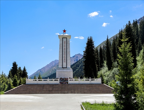 喬爾瑪烈士陵園位于217國(guó)道旁的新疆伊犁州尼勒克縣喬爾瑪,是為了紀(jì)念修建天山獨(dú)庫(kù)公路而犧牲的168名革命烈士而建的國(guó)家革命烈士陵園。