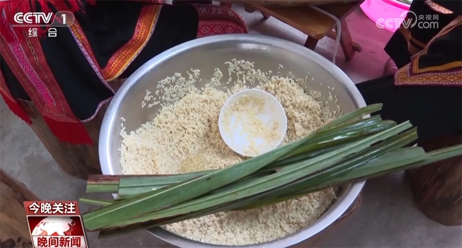 這樣的粽子,造型是不是很像一艘龍舟呢?在廣西賀州市昭平縣仙回瑤族鄉(xiāng)古盤(pán)村,村民們將提前準(zhǔn)備好的黃茅草平鋪在簸箕上,放入浸泡好的糯米,包裹成龍舟形狀,再放入大鍋中慢慢蒸煮。煮熟的黃茅粽表皮由綠色變?yōu)辄S褐色。