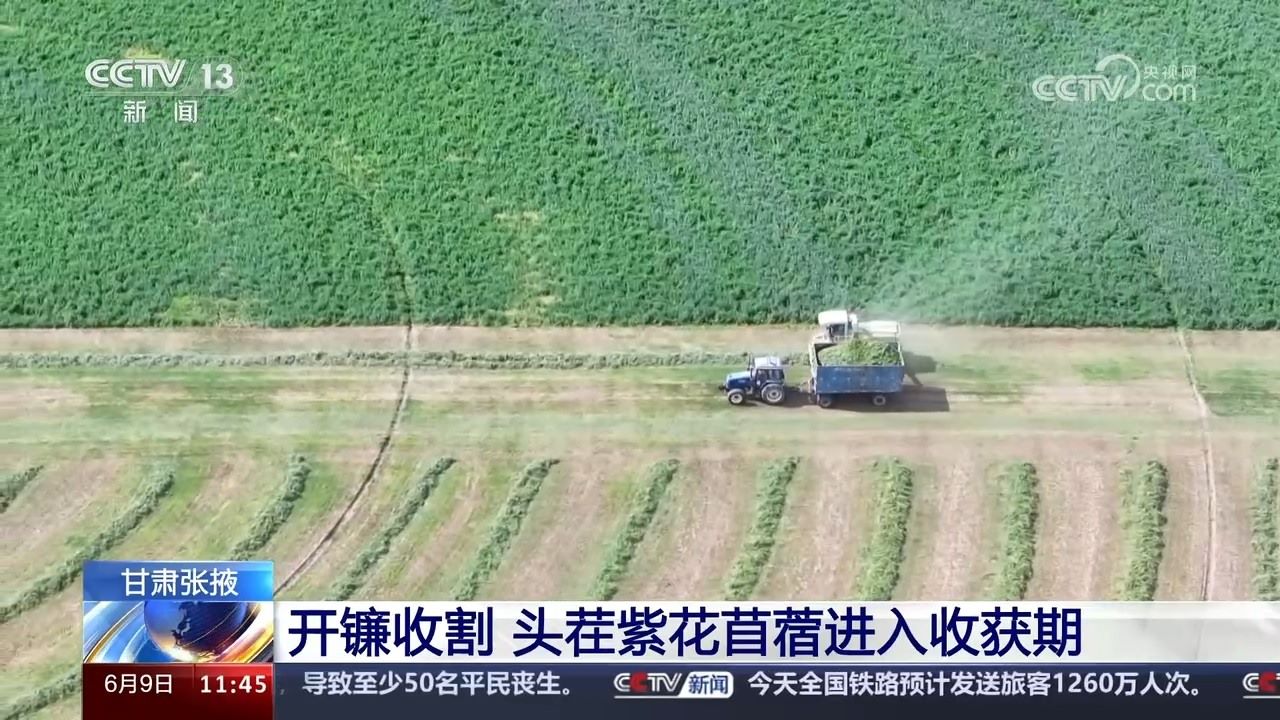 甘肅張掖:開鐮收割 頭茬紫花苜蓿進入收獲期