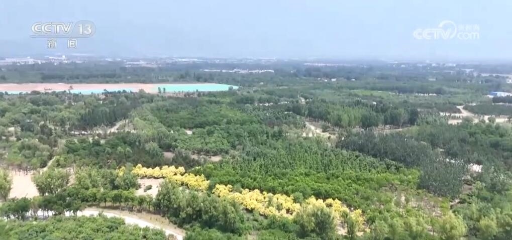 這里是北京昌平,這片總面積1976畝的景觀生態(tài)林,種植著檜柏、白蠟等9萬多棵喬灌木。放眼望去,樹木枝繁葉茂,深淺不同的綠色一層層向遠(yuǎn)方鋪開。林場的工作人員定期對樹木進(jìn)行培土、剪枝、澆水、巡護(hù)等工作,確保植被健康生長。以綠治沙的12年間,這里已經(jīng)成為具有防風(fēng)固沙、土壤生態(tài)修復(fù)等功能的生態(tài)綠地。