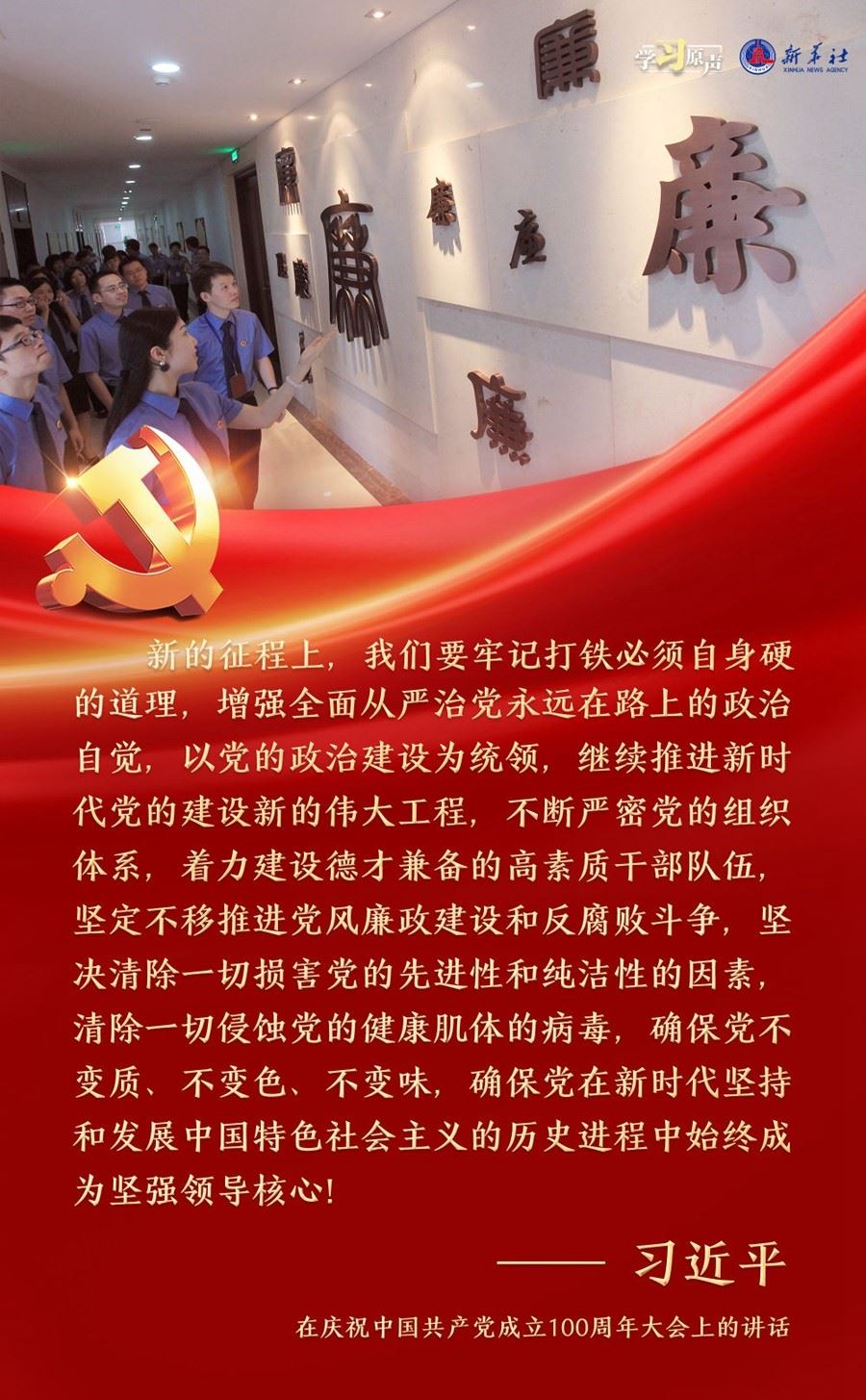 習近平總書記強調(diào),面對新征程上的新挑戰(zhàn)新考驗,我們必須高度警省,永遠保持趕考的清醒和謹慎,馳而不息推進全面從嚴治黨,使百年大黨在自我革命中不斷煥發(fā)蓬勃生機,始終成為中國人民最可靠、最堅強的主心骨。