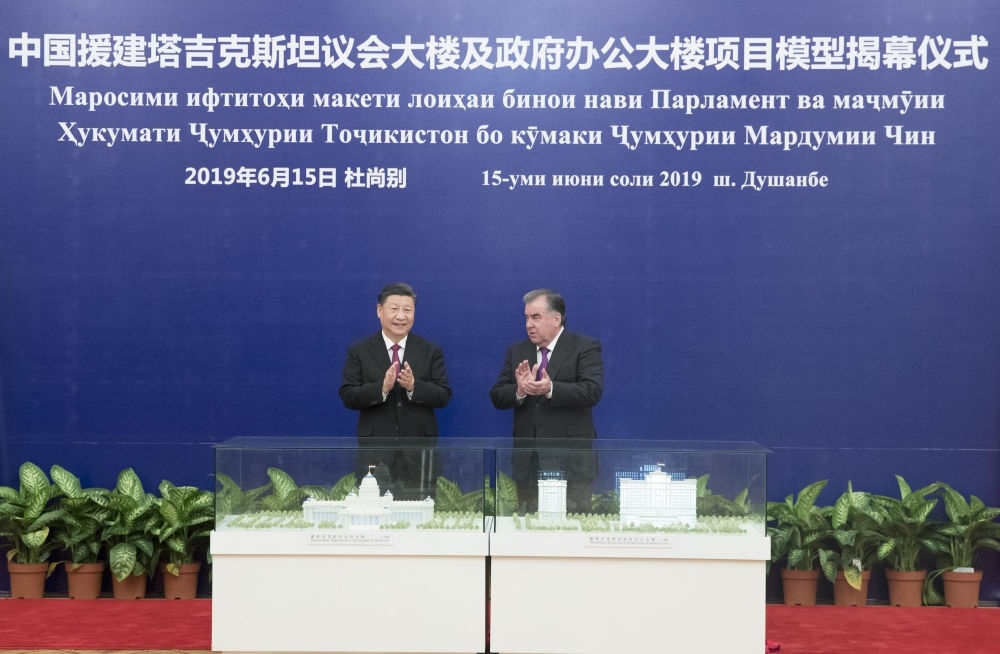 時(shí)光回到五年前,2019年6月15日,國(guó)家主席習(xí)近平在杜尚別同塔吉克斯坦總統(tǒng)拉赫蒙會(huì)談。會(huì)談后,兩國(guó)元首共同出席中方援塔議會(huì)大樓、政府辦公大樓項(xiàng)目模型揭幕儀式。