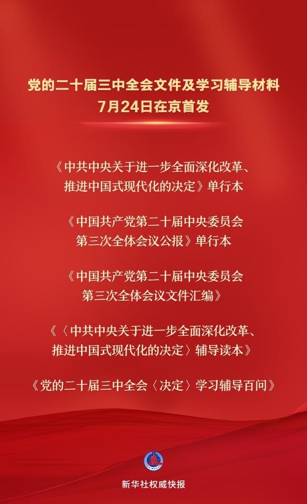 黨的二十屆三中全會文件及學習輔導材料7月24日在京首發(fā)