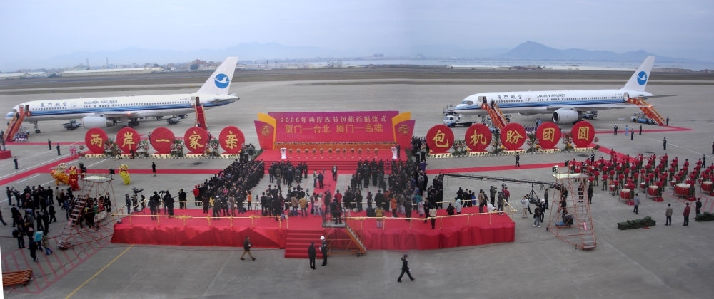 2006年,廈航作為新增廈門航點的唯一運營航空公司,執(zhí)行了廈門-臺北、廈門-高雄航線的包機任務。這是首航儀式現場。