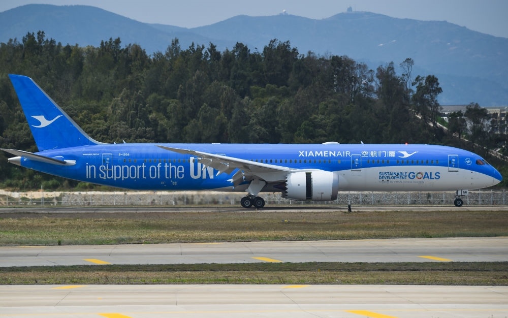 2018年3月21日,聯合國特殊涂裝飛機廈門航空“聯合夢想號”正式在福建福州長樂國際機場亮相。新華社記者 宋為偉 攝